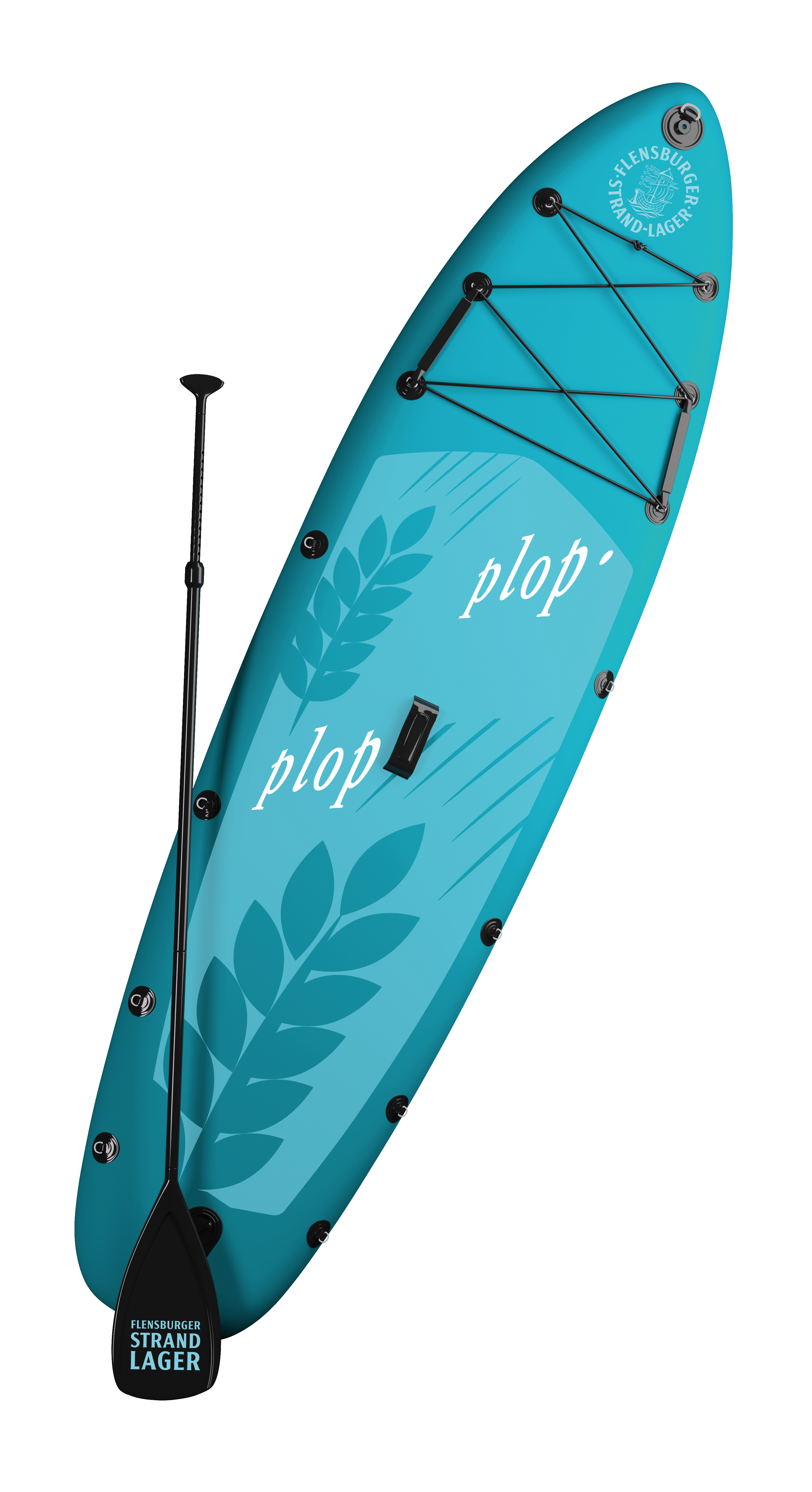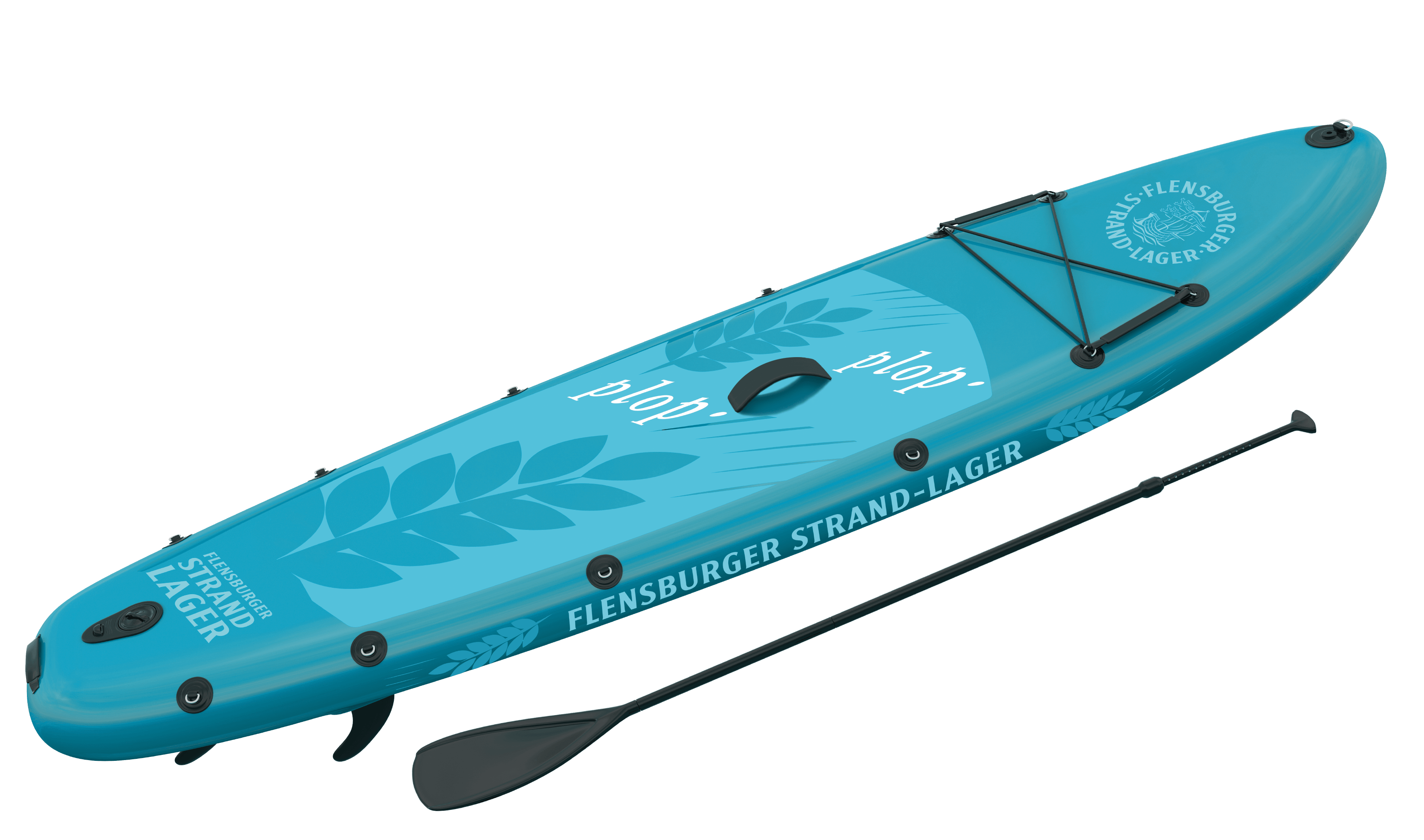 Mit 14 kg Gewicht und einem Rucksack auf Rädern (90x50x30 cm) perfekt für den leichten Transport. Enthalten sind ein Fiberglass-Paddel (215 cm x 29 mm) sowie eine Handpumpe, beide natürlich mit Flensburger Strand-Lager Logo.